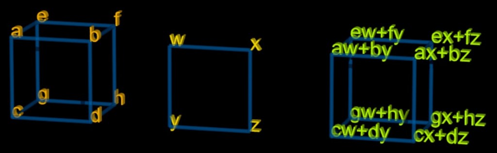 The exercise below represents a rank 3 tensor (2×2×2) by showing two side by side (2×2) structures and multiplying this by a (2×2) structure to obtain another rank 3 tensor.